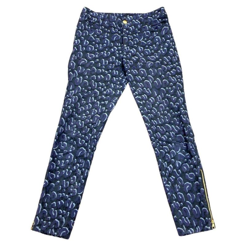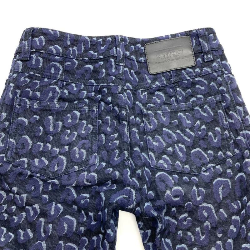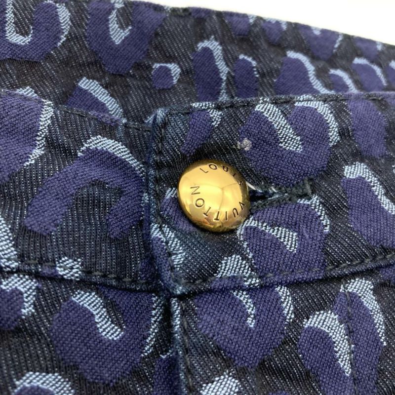 - ルイヴィトン LOUIS VUITTON レオパード スキニーパンツ コットン ポリウレタン ブルー ストレッチ サイドジップ ヒョウ柄 36 レディース【中古】