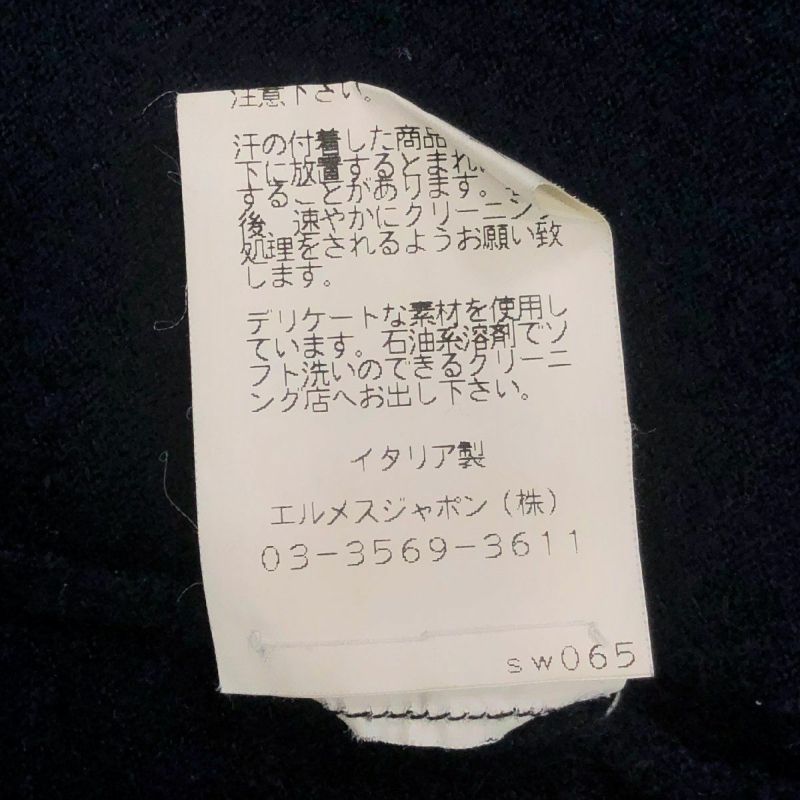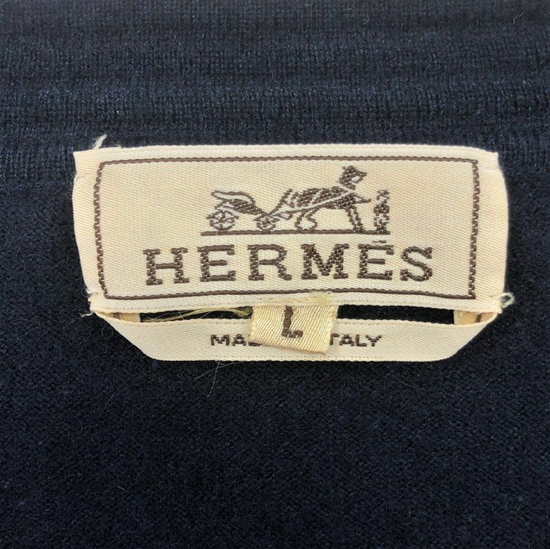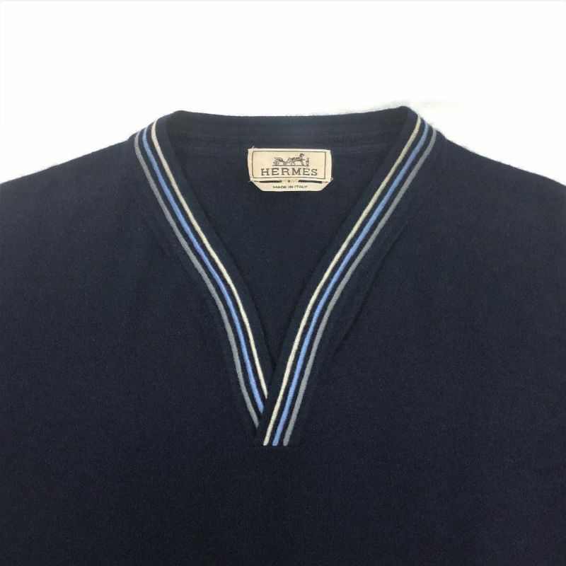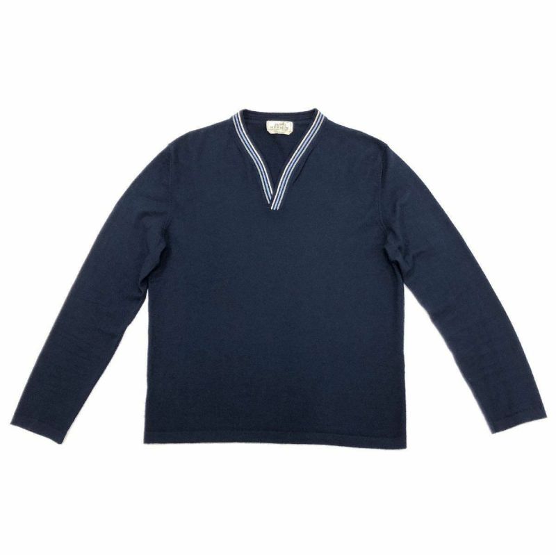 HERMES エルメス ニット セーター カシミヤ ウール シルク ライン Vネック ネイビー Lサイズ イタリア製