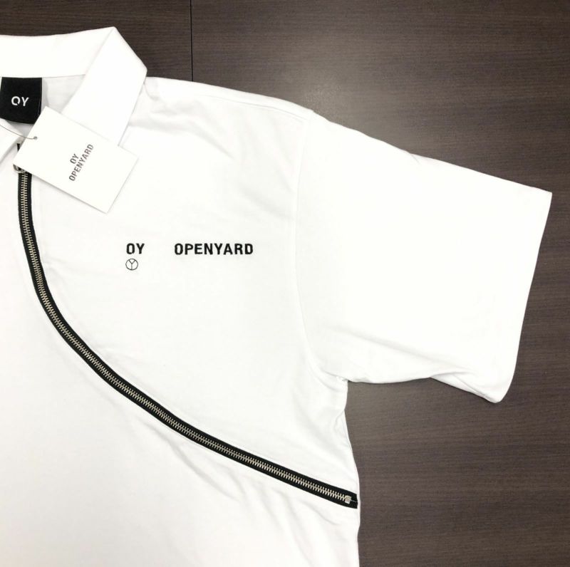 3. 【未使用】 OY オーワイ SIDE CURVED LINE ZIPPER COLLAR T 白 フリーサイズ 半袖 カットソー カーブ ジップ