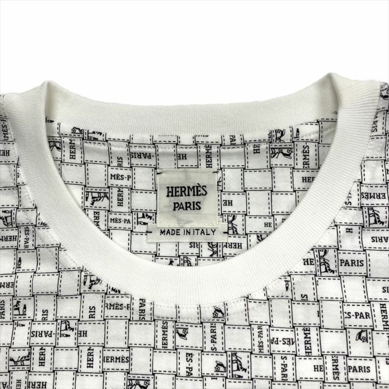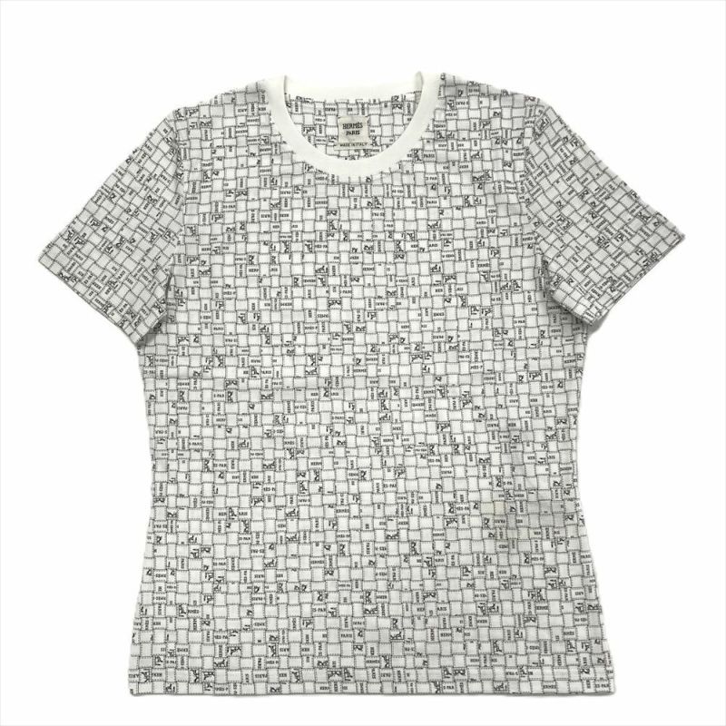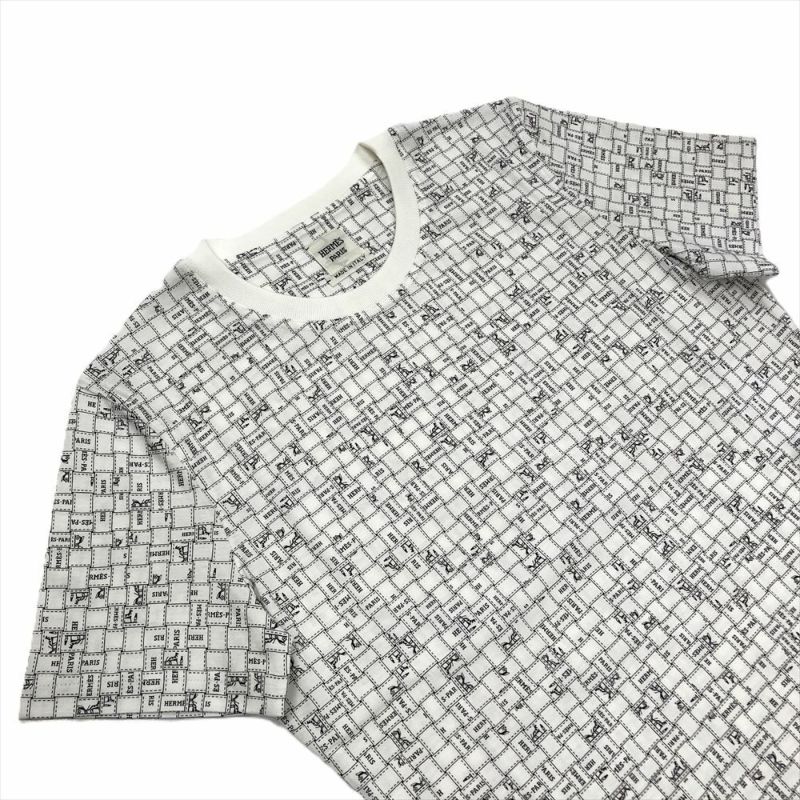 エルメス HERMES ボルデュックチェック マイクロTシャツ カットソー コットン ホワイト 38 半袖【中古】