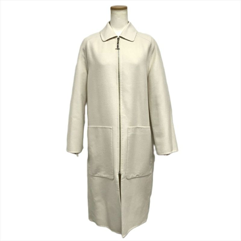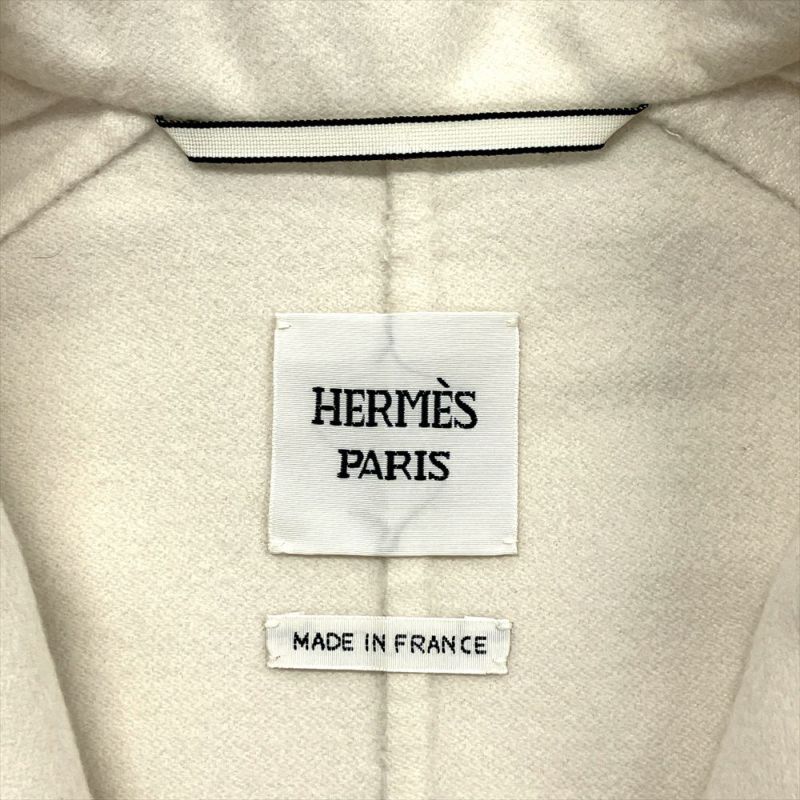 - エルメス HERMES ステンカラーコート カシミヤ ホワイト 36 シェーヌダンクル ロングコート レディース【中古】