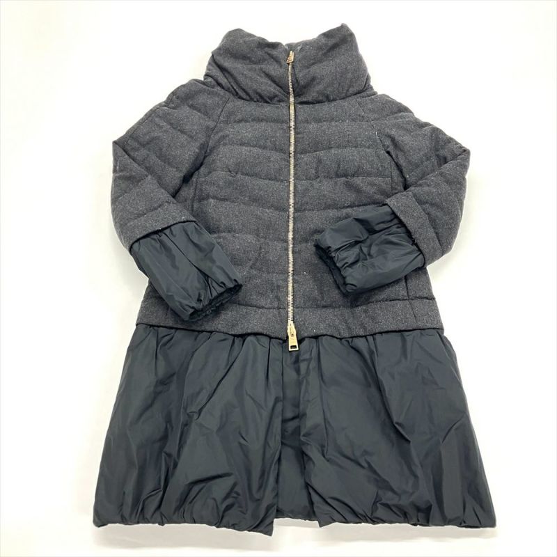 3. ヘルノ Herno 切り替え ダウンコート ウール ポリアミド ポリウレタン ブラック ゴールド金具 40 ジャケット レディース【中古】