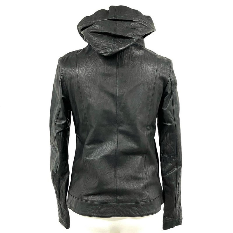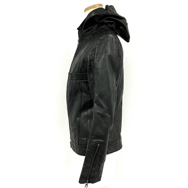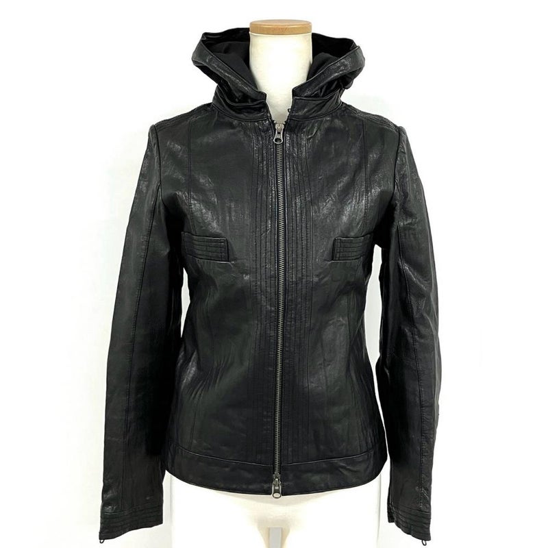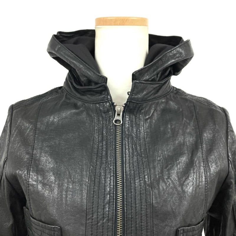 4. ビバユー VIVAYOU ライダースジャケット レザー ブラック 4 ピッグスキン フード脱着可 レディース【中古】