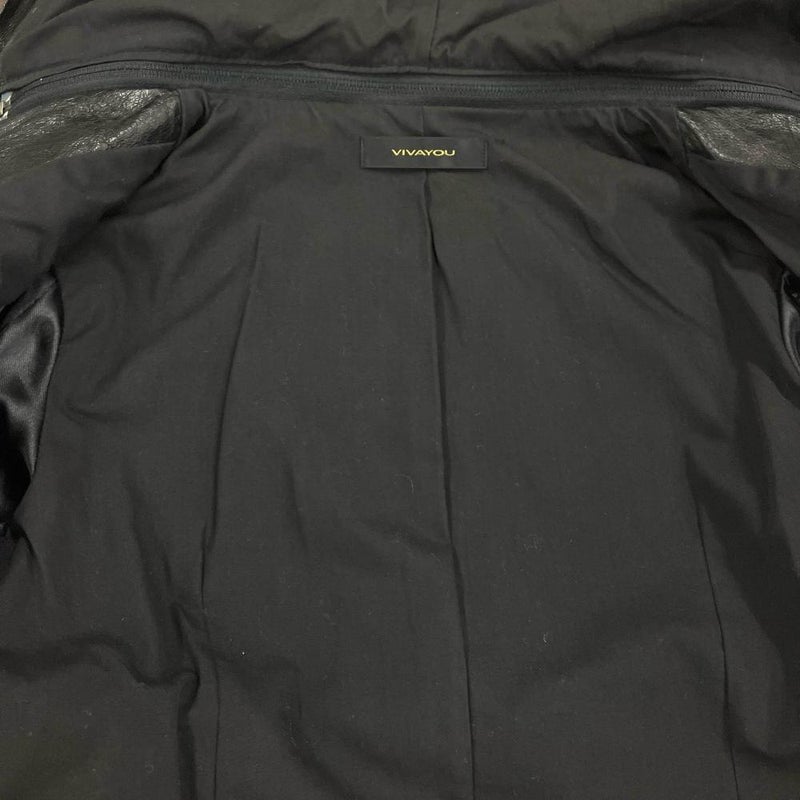 5. ビバユー VIVAYOU ライダースジャケット レザー ブラック 4 ピッグスキン フード脱着可 レディース【中古】
