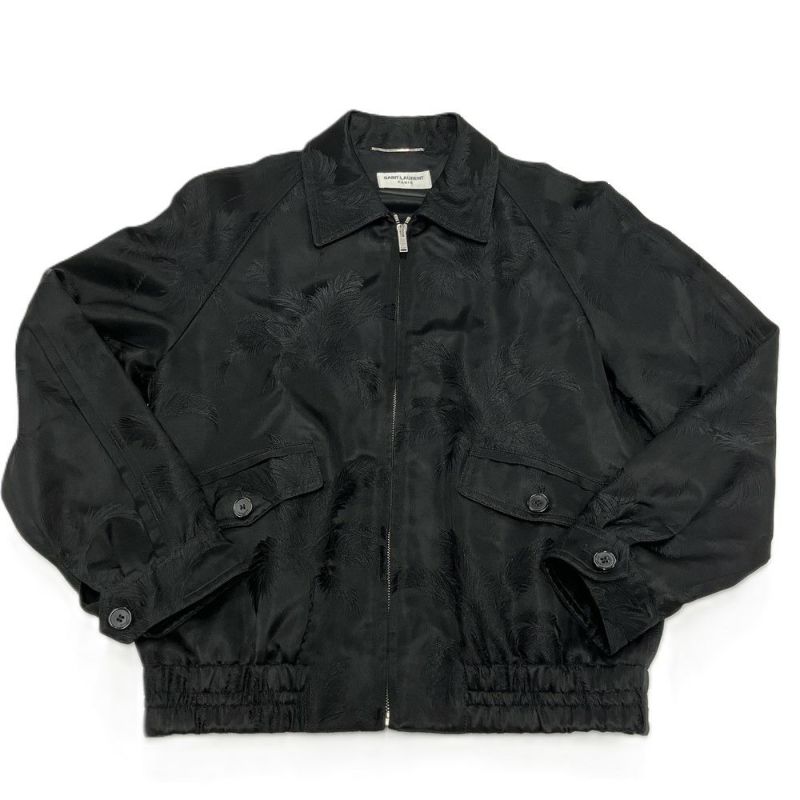 5. サンローラン SAINT LAURENT パームツリー ジャケット ブルゾン レーヨン 絹 ブラック 42 サテン メンズ【中古】