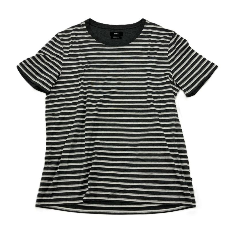 3. ヒューゴボス HUGO BOSS Tiburt ボーダー 半袖Tシャツ コットン グレー L メンズ【中古】