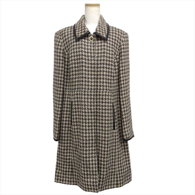 コーチ COACH 千鳥格子 ロングコート ステンカラーコート F80029 ブラウン ゴールド金具 ウール レディース【中古】