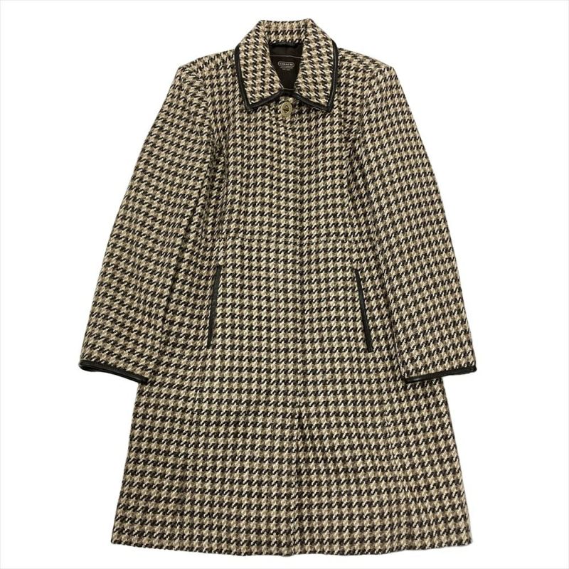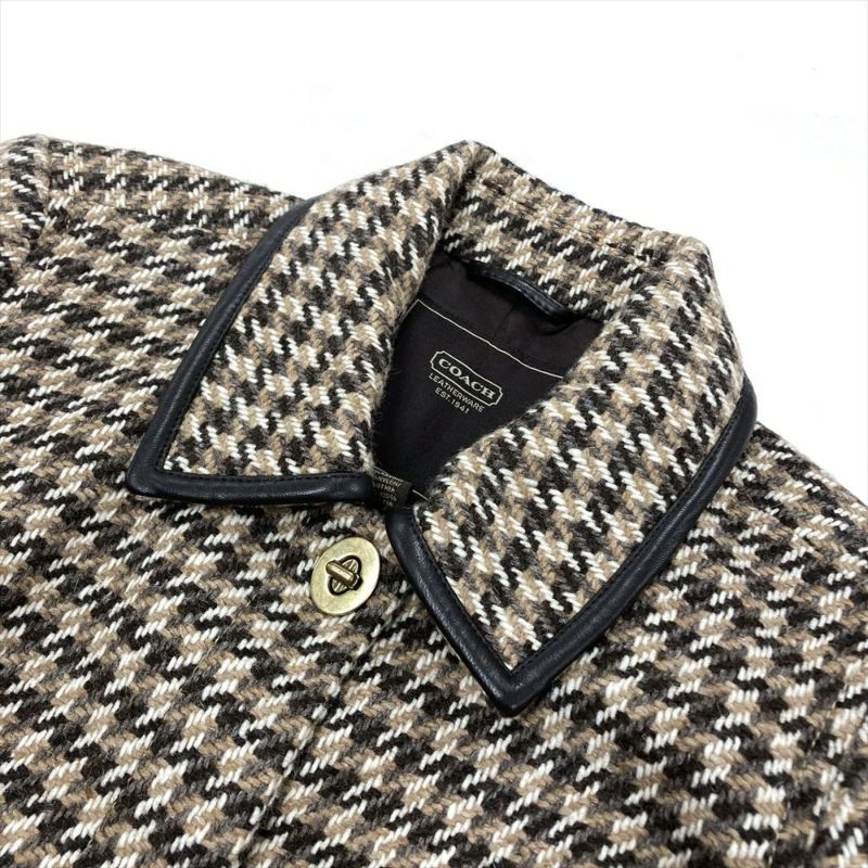 4. コーチ COACH 千鳥格子 ロングコート ステンカラーコート F80029 ブラウン ゴールド金具 ウール レディース【中古】