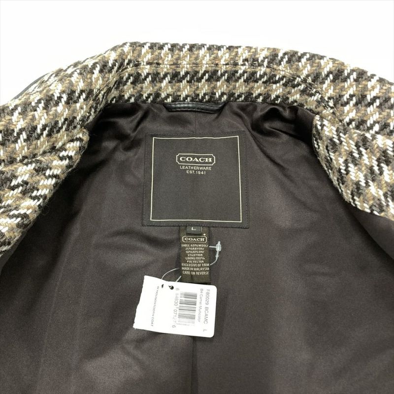 5. コーチ COACH 千鳥格子 ロングコート ステンカラーコート F80029 ブラウン ゴールド金具 ウール レディース【中古】