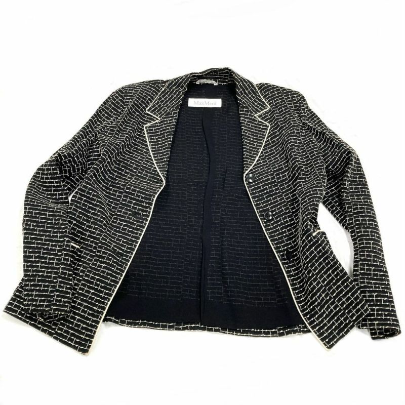 5. マックスマーラ MAX MARA テーラードジャケット ブラック 42 刺繍 白タグ レディース【中古】