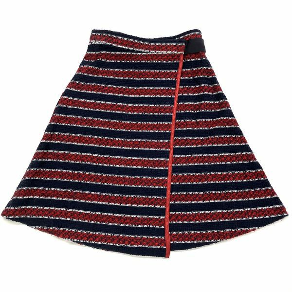 3. サカイ Sacai luck ボーダー ラップ 巻き スカート 11SSLU221 レッド 2 レディース【中古】