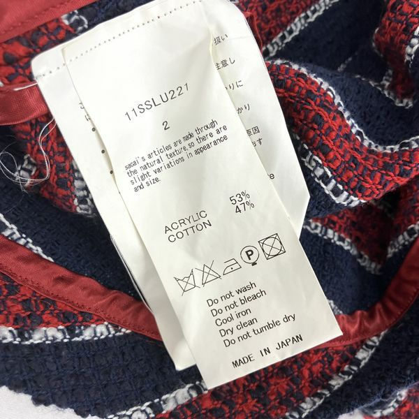 5. サカイ Sacai luck ボーダー ラップ 巻き スカート 11SSLU221 レッド 2 レディース【中古】