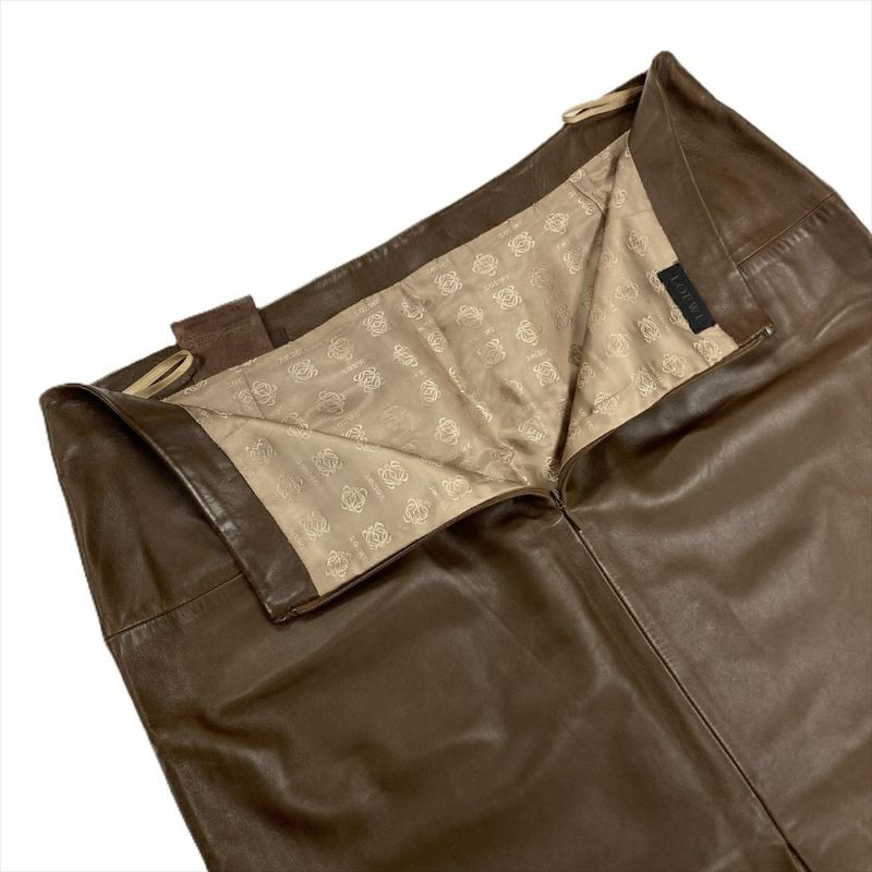 4. ロエベ LOEWE スカート レザー ブラウン レディース【中古】