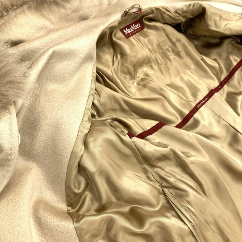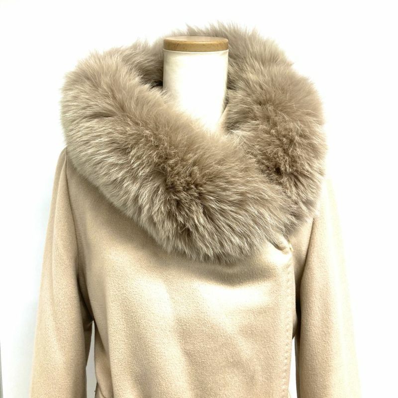 3. マックスマーラ MAX MARA STUDIO MANGO ラップ ファー コート カシミヤ ベージュ 42【中古】