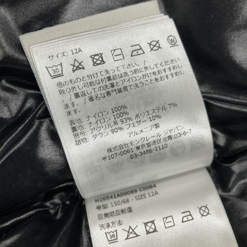4. モンクレール MONCLER Badyf ダウンジャケット H29541A00069C0064 ブラック 12 キッズ【中古】