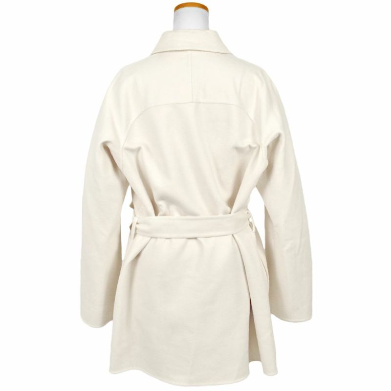 4. エルメス HERMES ダブルフェイス コート カシミヤ レザー ホワイト レディース【中古】