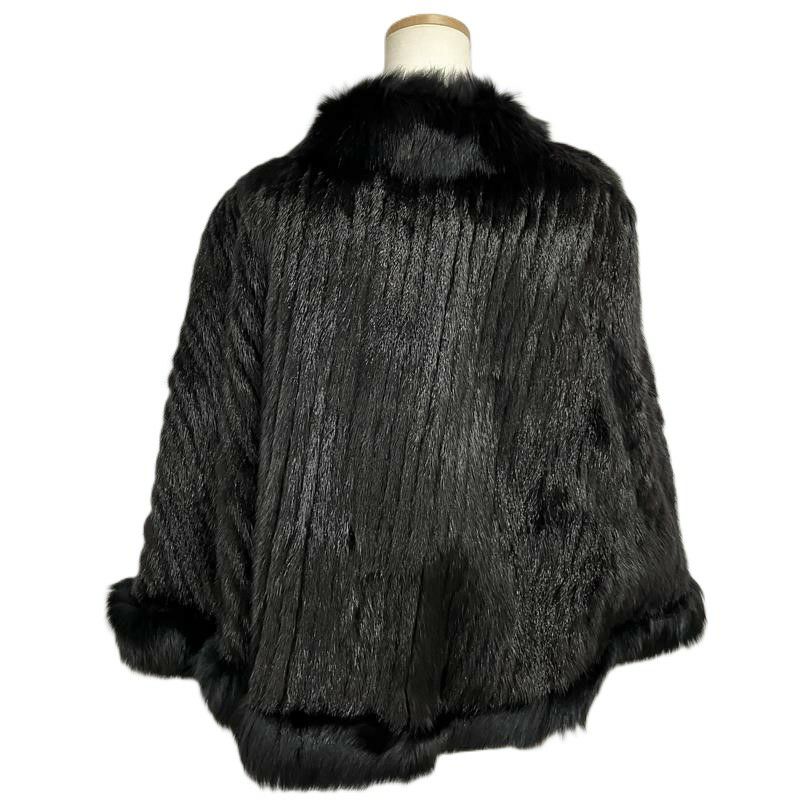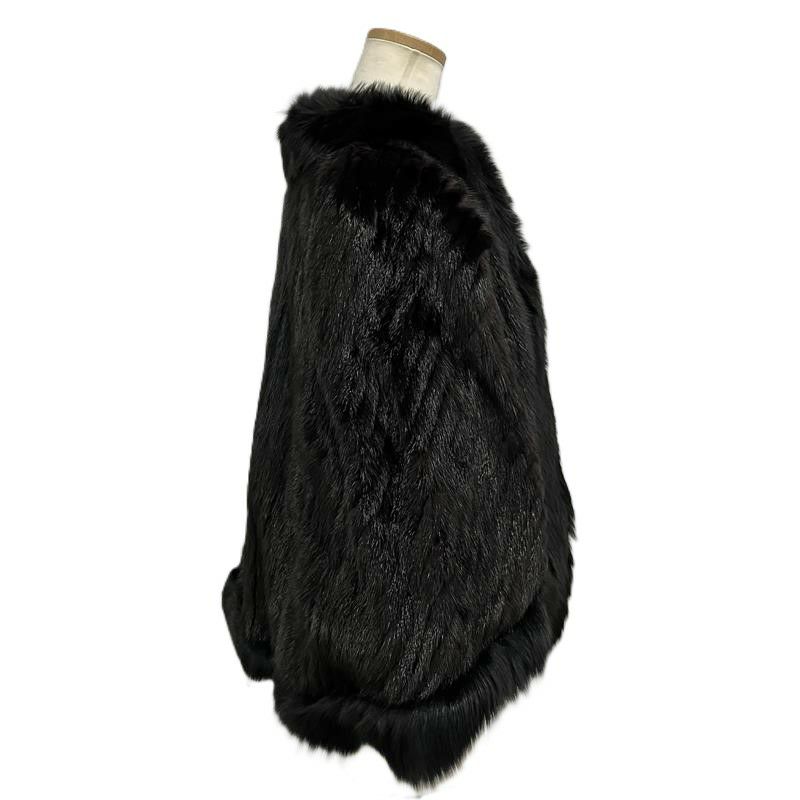5. サガミンク SAGA MINK ポンチョ ファー キュプラ アセテート ブラック F ネーム入り レディース【中古】