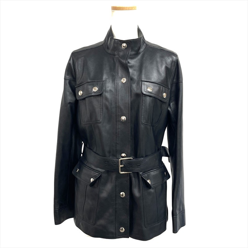 5. ロエベ LOEWE ラムレザー ライダースジャケット ラムスキン ブラック シルバー金具 40 4ポケット レディース【中古】