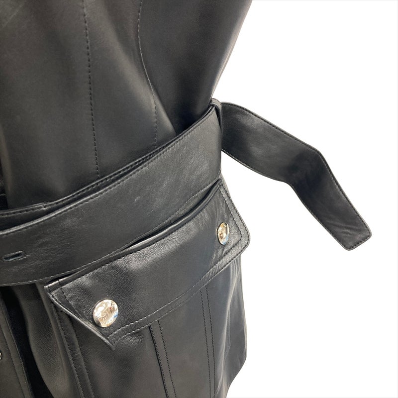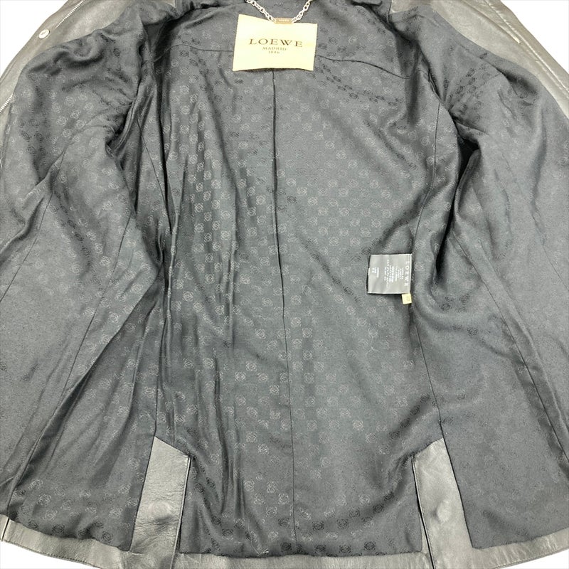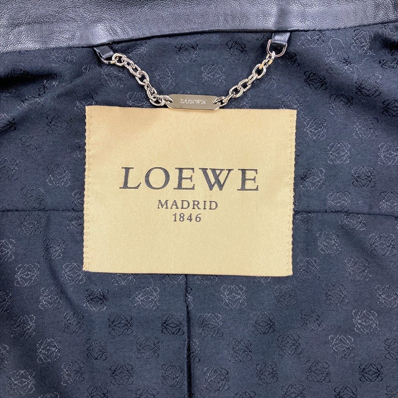 3. ロエベ LOEWE ラムレザー ライダースジャケット ラムスキン ブラック シルバー金具 40 4ポケット レディース【中古】