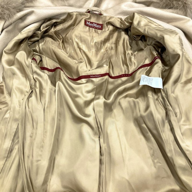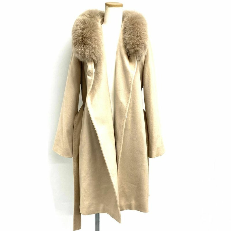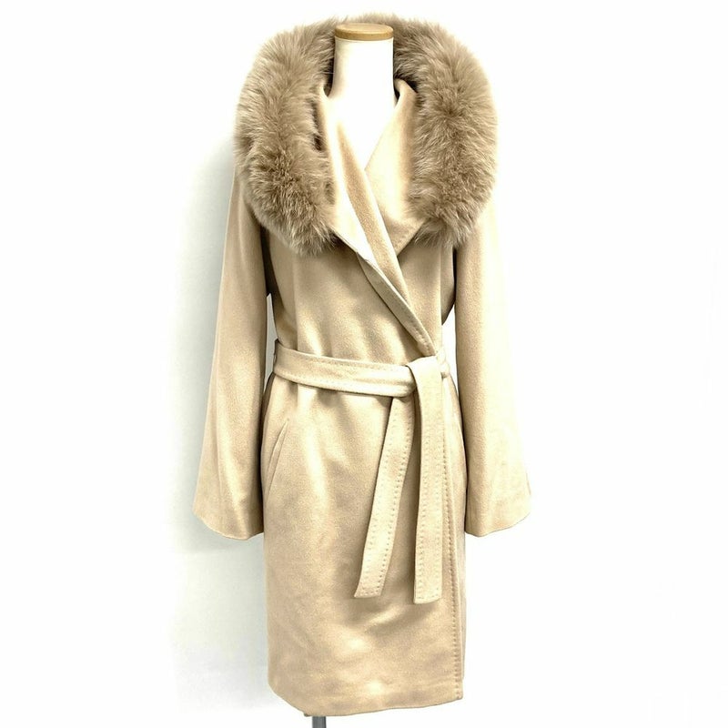 3. マックスマーラ MAX MARA STUDIO MANGO ラップ ファー コート カシミヤ ベージュ 42【中古】