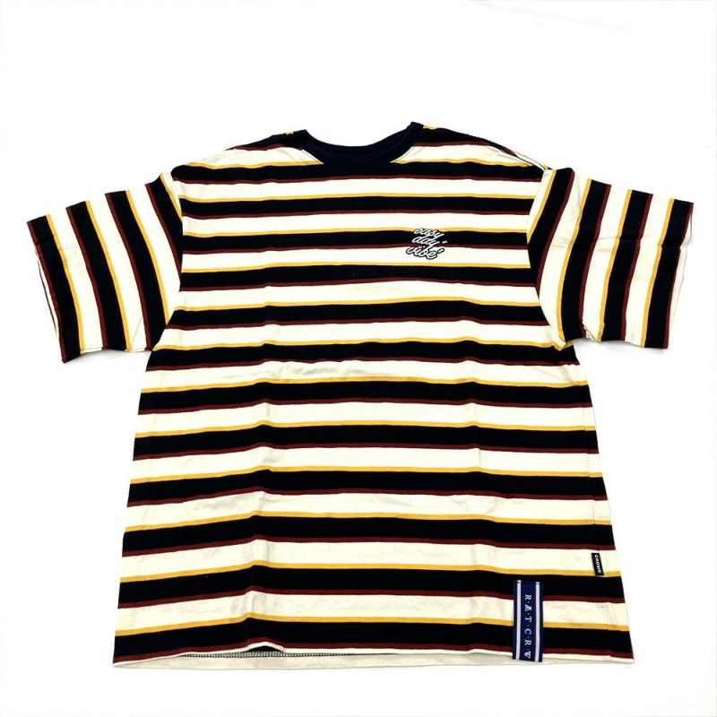 5. ロマンティッククラウン ROMANTIC CROWN オーバーフィット 半袖Tシャツ コットン ホワイト S ボーダー ユニセックス【中古】