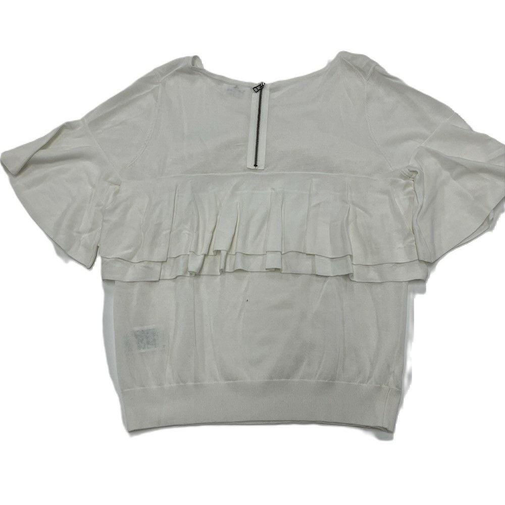 他の画像を見る ランバンオンブルー LANVIN en Bleu フリル 半袖ニット カットソー コットン レーヨン ホワイト 38 レディース【中古】 ランク5 通常価格 ¥ 2,095 当サイト価格 ¥ 2,095 税込 カートに入れる お気に入りに登録する