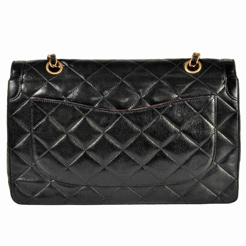 3. シャネル CHANEL マトラッセ Wフラップ チェーン ショルダーバッグ ラムスキン ブラック ゴールド金具 ココマーク パリ限定【中古】