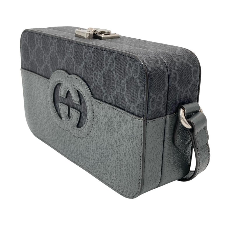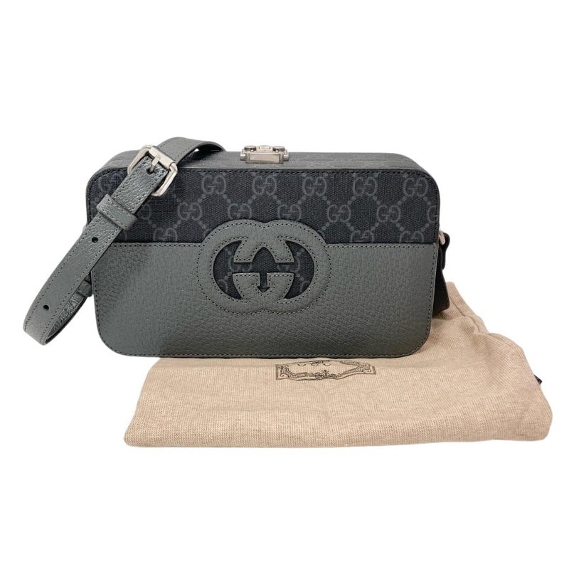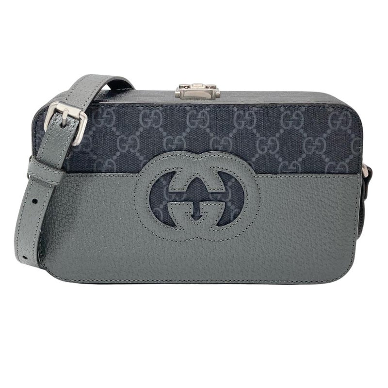 グッチ GUCCI カットアウト インターロッキングG ショルダーバッグ GGスプリームキャンバス レザー 725341 ブラック×グレー レディース【中古】