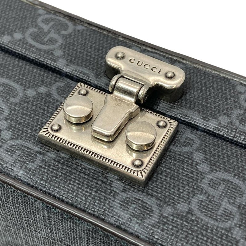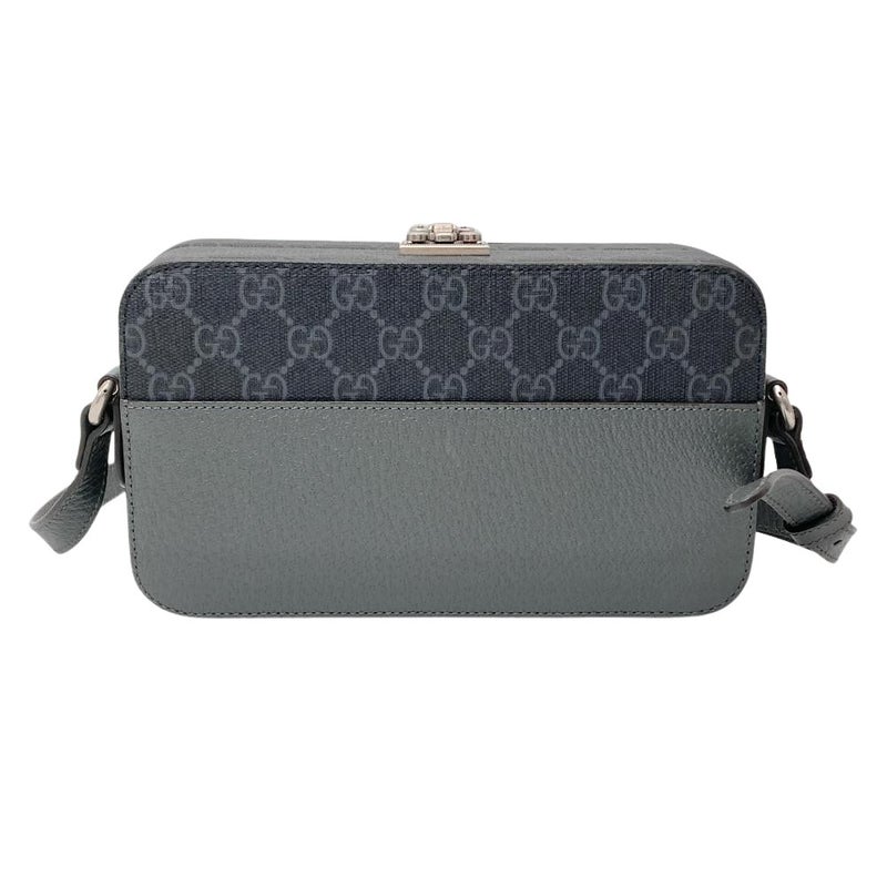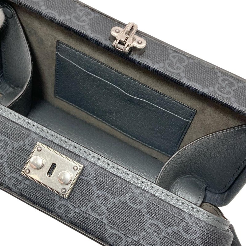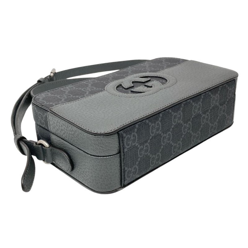 5. グッチ GUCCI カットアウト インターロッキングG ショルダーバッグ GGスプリームキャンバス レザー 725341 ブラック×グレー レディース【中古】