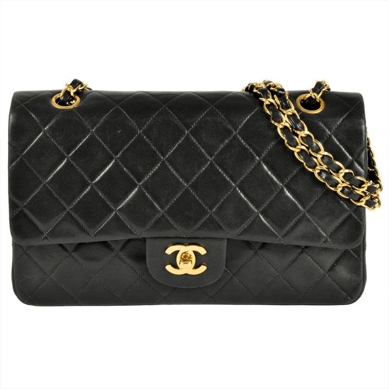 3. シャネル CHANEL マトラッセ 25 Wフラップ チェーン ショルダーバッグ ラムスキン ブラック ゴールド金具 ココマーク 2番台 レディース【中古】