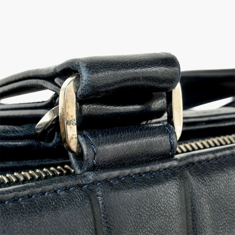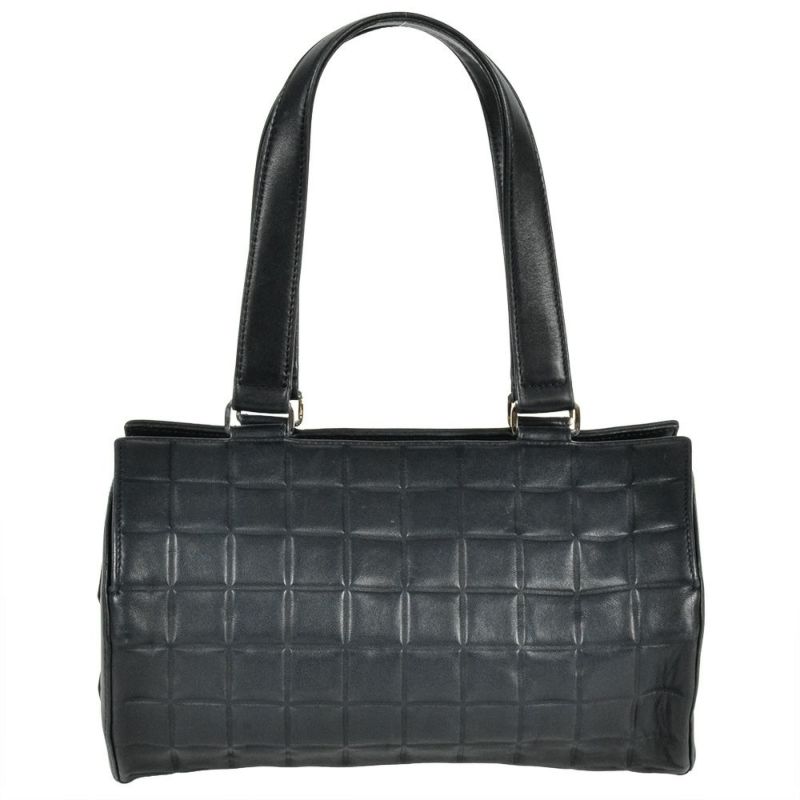 5. シャネル CHANEL チョコバー ハンドバッグ ラムスキン ネイビー シルバー金具 7桁7番台 レディース【中古】