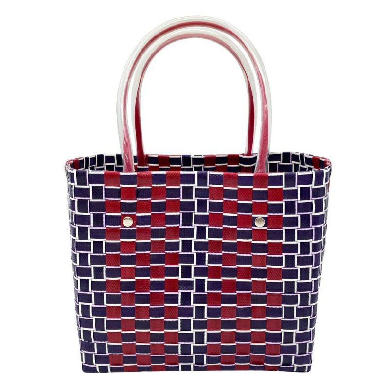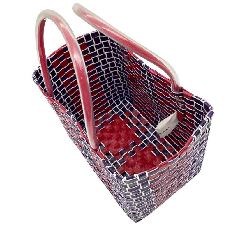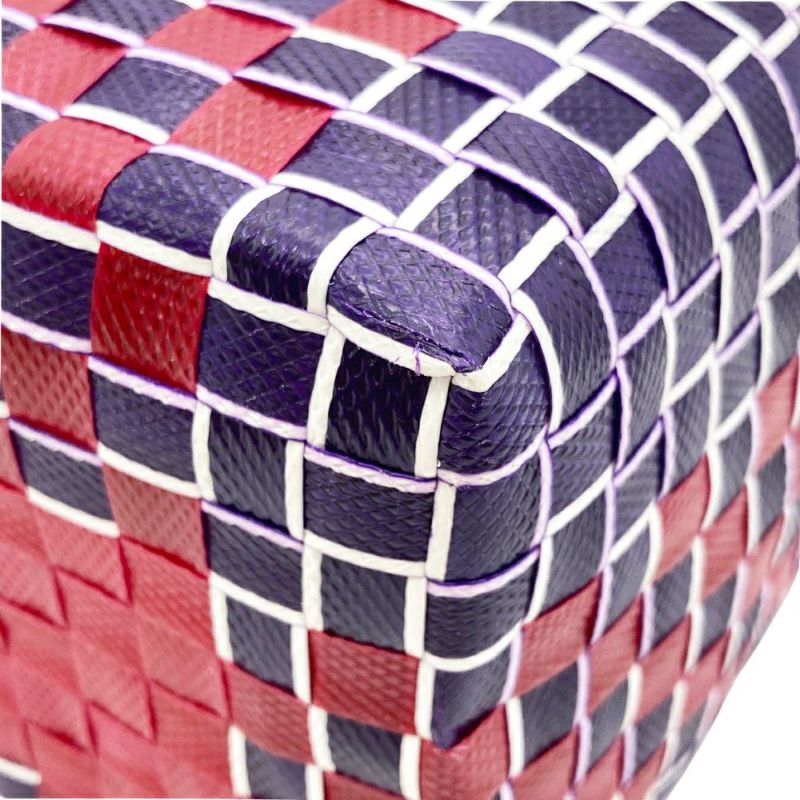 3. マルニ MARNI フラワーカフェ バスケット かごバッグ ハンドバッグ レッド マルチカラー 編み込み レディース【中古】