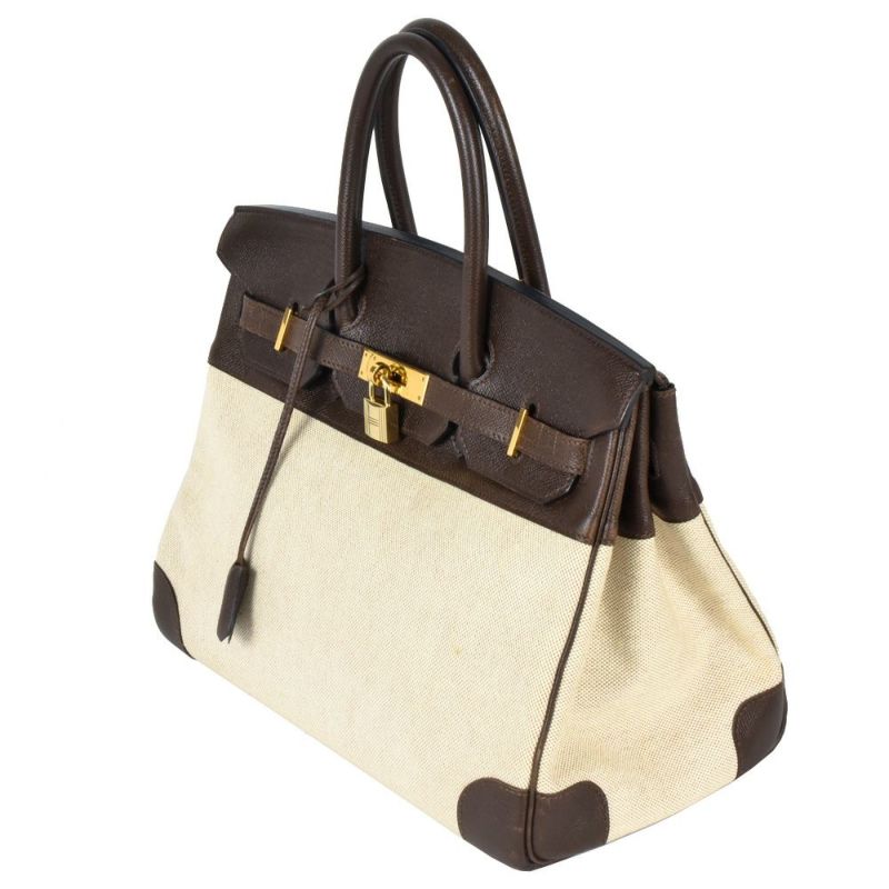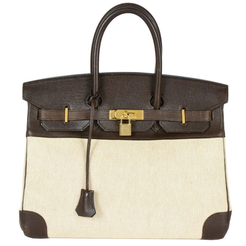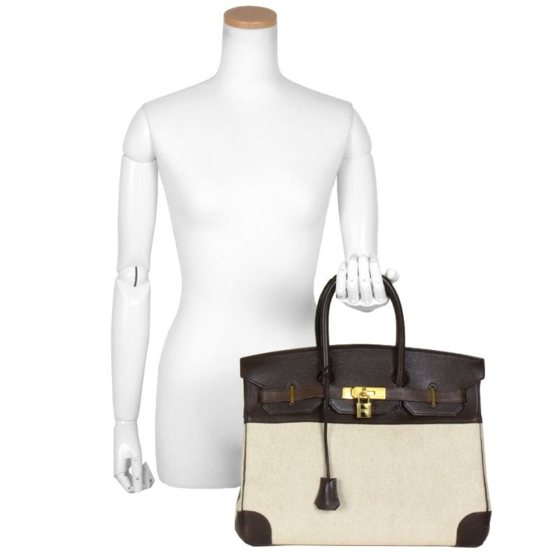 送料無料 エルメス HERMES バーキン35 ハンドバッグ トワルアッシュ クシュベル 〇Y刻印 ナチュラル ゴールド金具【中古】