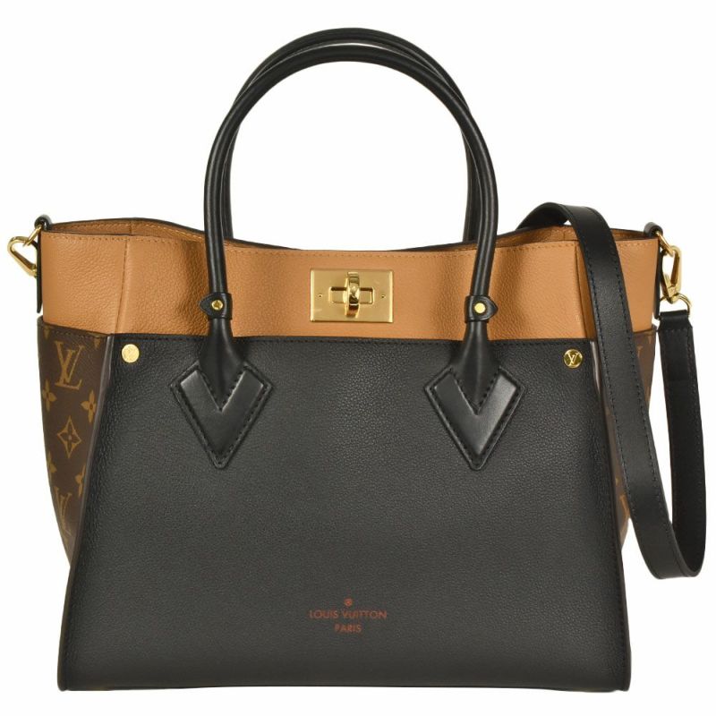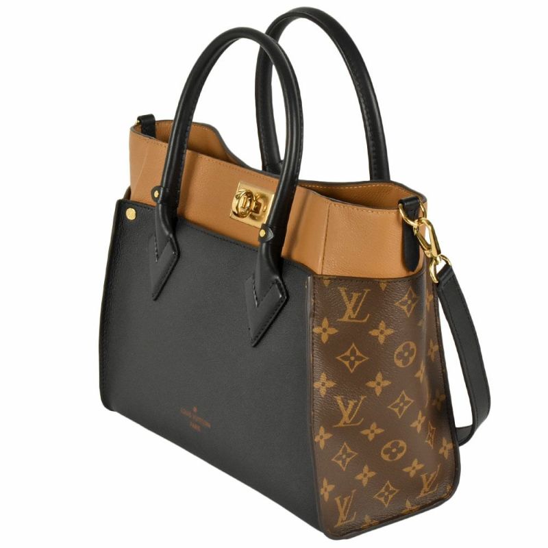 3. ルイヴィトン LOUIS VUITTON オンマイサイドMM トートバッグ 2WAY モノグラム キャンバス グレインカーフレザー M53823 ノワール ゴールド金具 AH0241 レディース【中古】