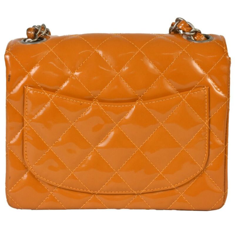 3. シャネル CHANEL ミニ マトラッセ ココマーク シングルフラップ チェーン ショルダーバッグ エナメル オレンジ シルバー金具【中古】