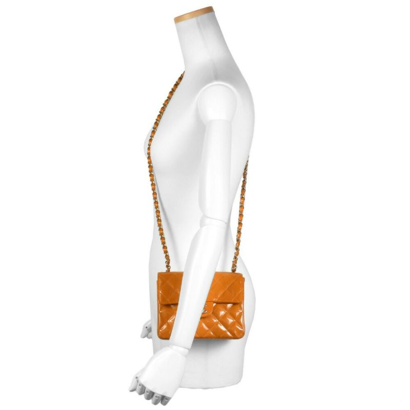5. シャネル CHANEL ミニ マトラッセ ココマーク シングルフラップ チェーン ショルダーバッグ エナメル オレンジ シルバー金具【中古】