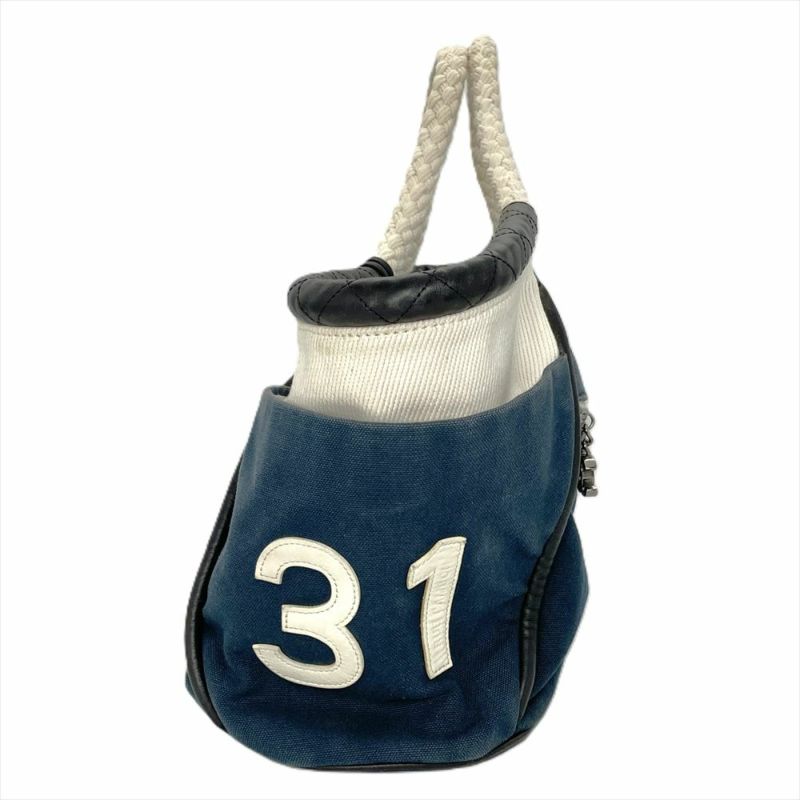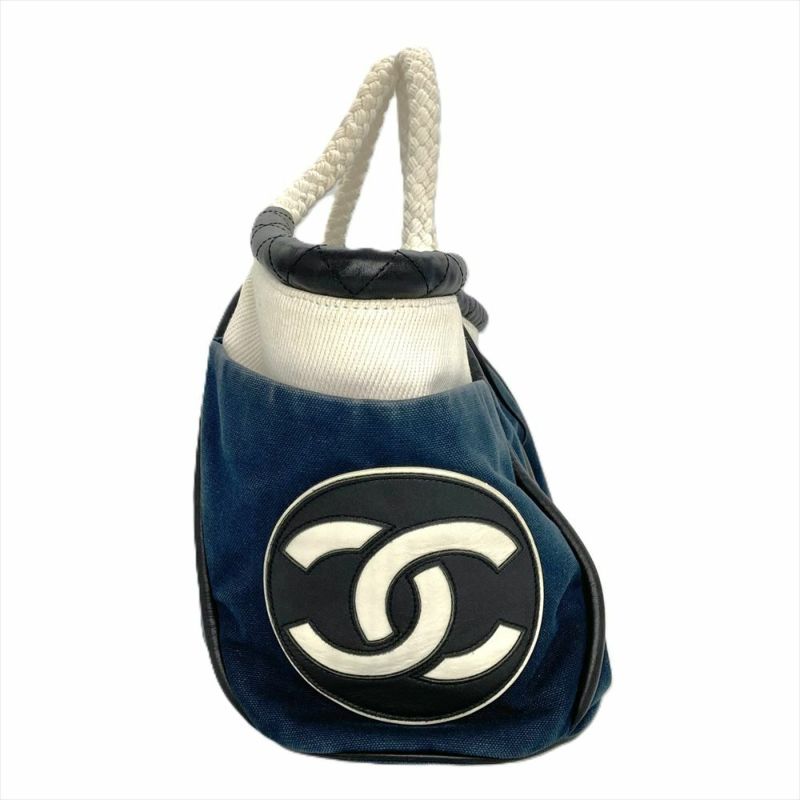 4. シャネル CHANEL NO.5 ココマーク チョコバー ハンドバッグ キャンバス A28010 ネイビー ロープハンドル レディース【中古】