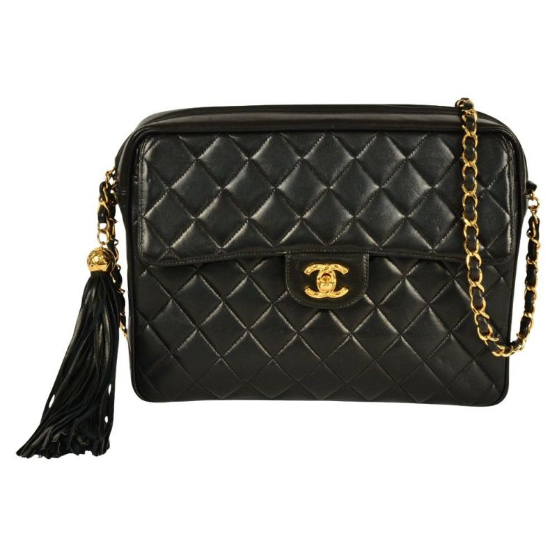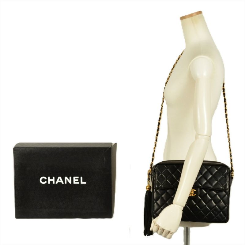 4. シャネル CHANEL マトラッセ ココマーク ショルダーバッグ ラムスキン ブラック ゴールド金具 フリンジ タッセル 2番台【中古】