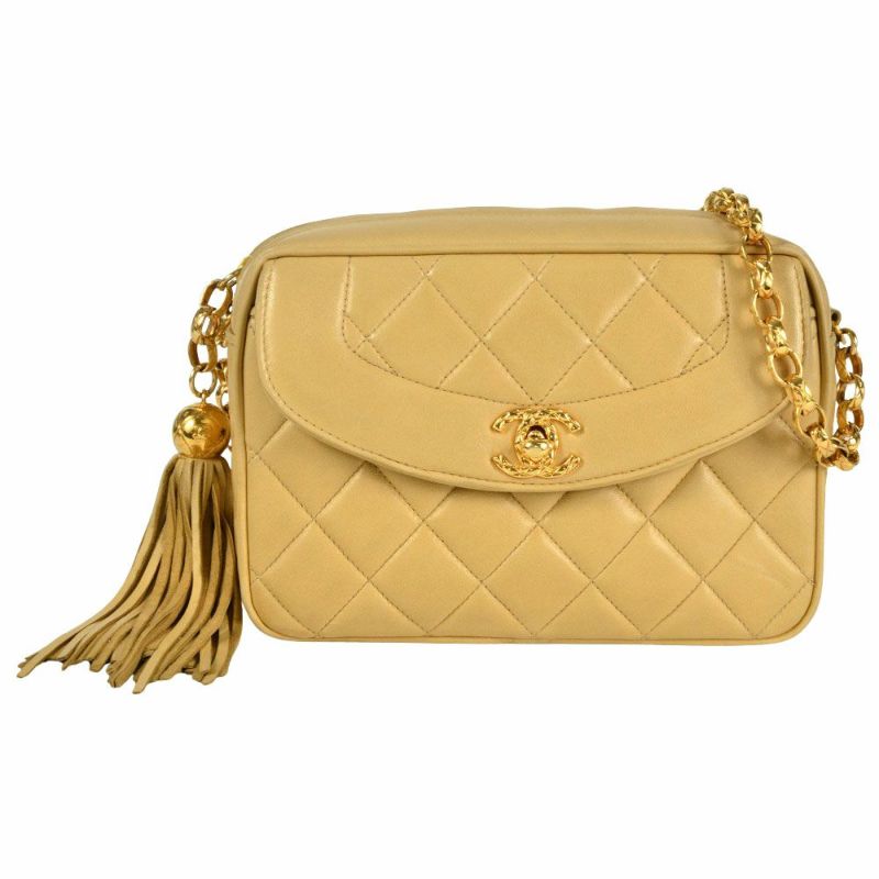 3. シャネル CHANEL ショルダーバッグ ラムスキン ベージュ ゴールド金具 ダイアナフラップ ココマーク フリンジ 2番台 レディース【中古】