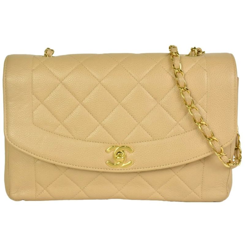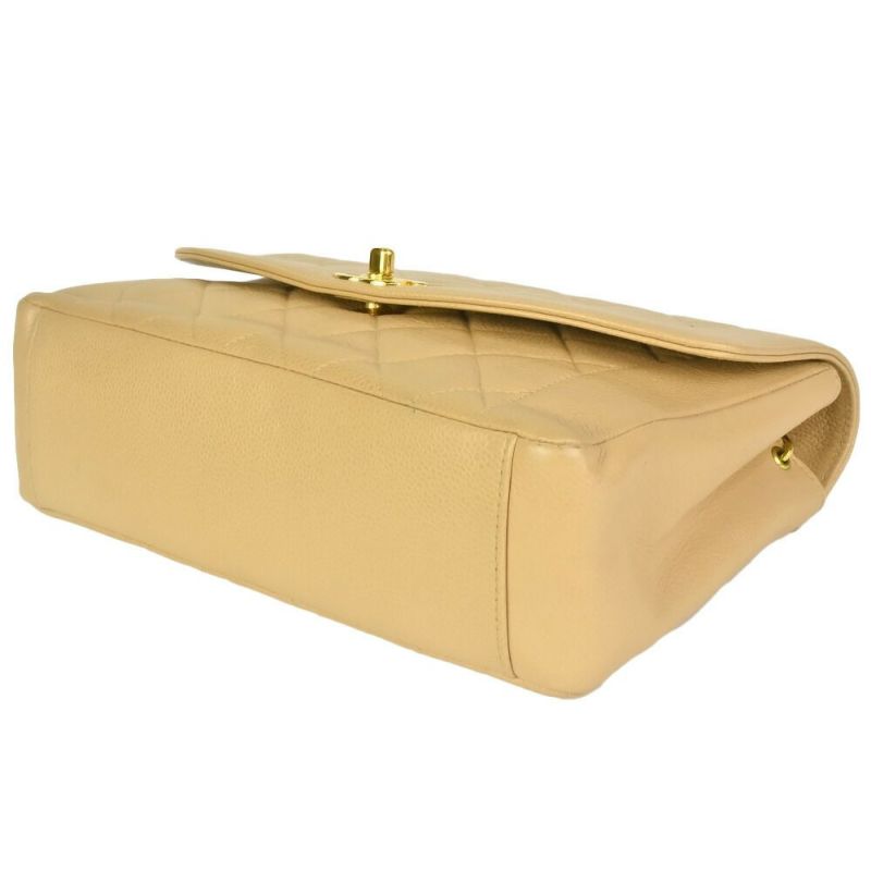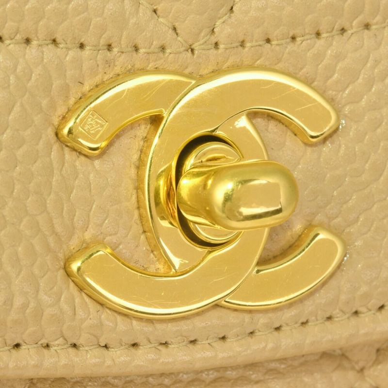 4. シャネル CHANEL ダイアナ25 マトラッセ シングルチェーン ショルダーバッグ キャビアスキン A01165 ベージュ ゴールド金具【中古】