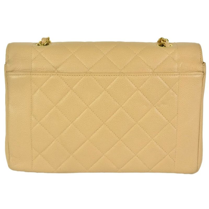 3. シャネル CHANEL ダイアナ25 マトラッセ シングルチェーン ショルダーバッグ キャビアスキン A01165 ベージュ ゴールド金具【中古】