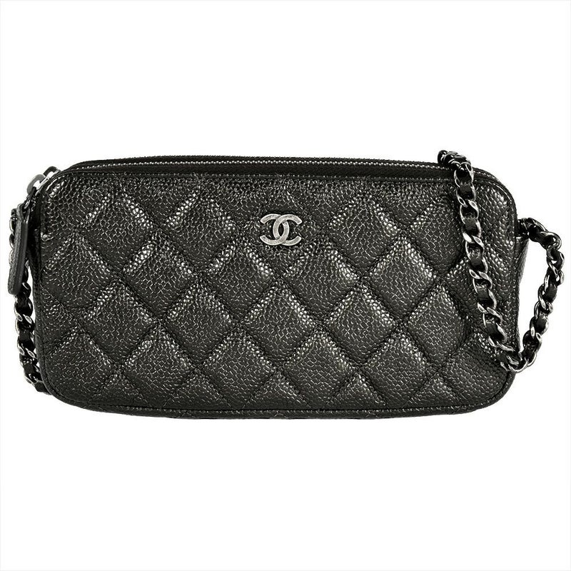 シャネル CHANEL マトラッセ ミニ チェーンウォレット ショルダーバッグ キャビアスキン A82527 ブラック シルバー金具 8桁23番台 ココマーク【中古】