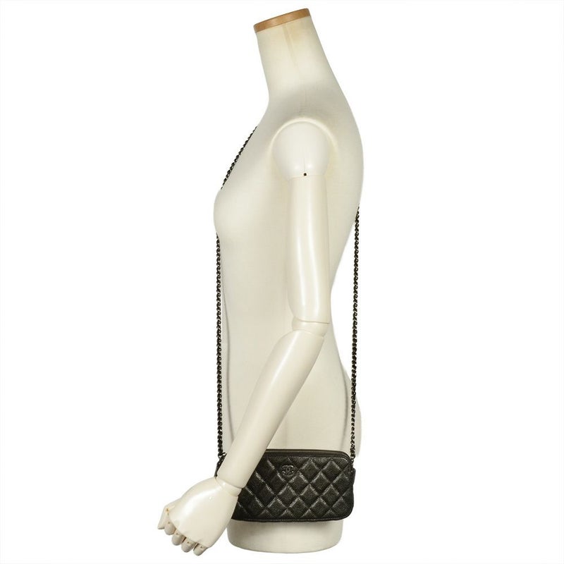 5. シャネル CHANEL マトラッセ ミニ チェーンウォレット ショルダーバッグ キャビアスキン A82527 ブラック シルバー金具 8桁23番台 ココマーク【中古】