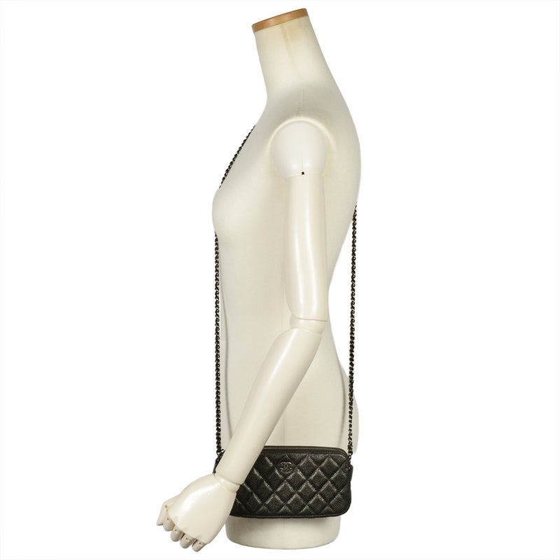 3. シャネル CHANEL マトラッセ ミニ チェーンウォレット ショルダーバッグ キャビアスキン A82527 ブラック 8桁23番台 ココマーク【中古】