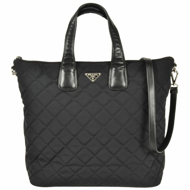 プラダ PRADA キルティング トートバッグ 2WAY ナイロン レザー BN2149 ブラック レディース【中古】