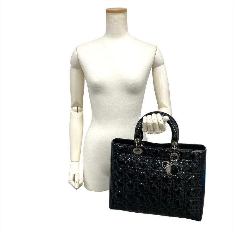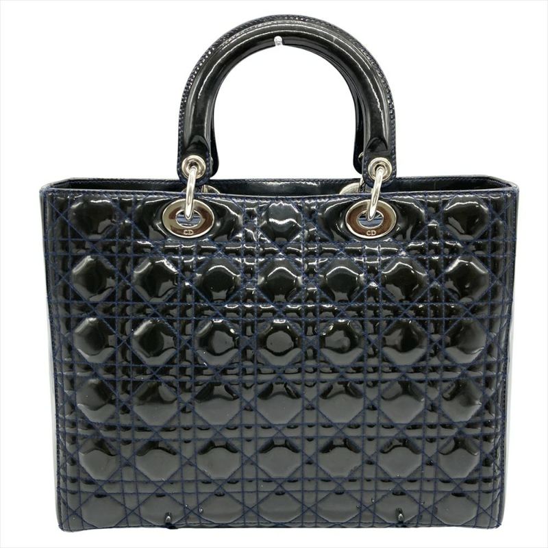 クリスチャンディオール Christian Dior レディディオール カナージュ ハンドバッグ パテントレザー ブラック シルバー金具 エナメル レディース【中古】