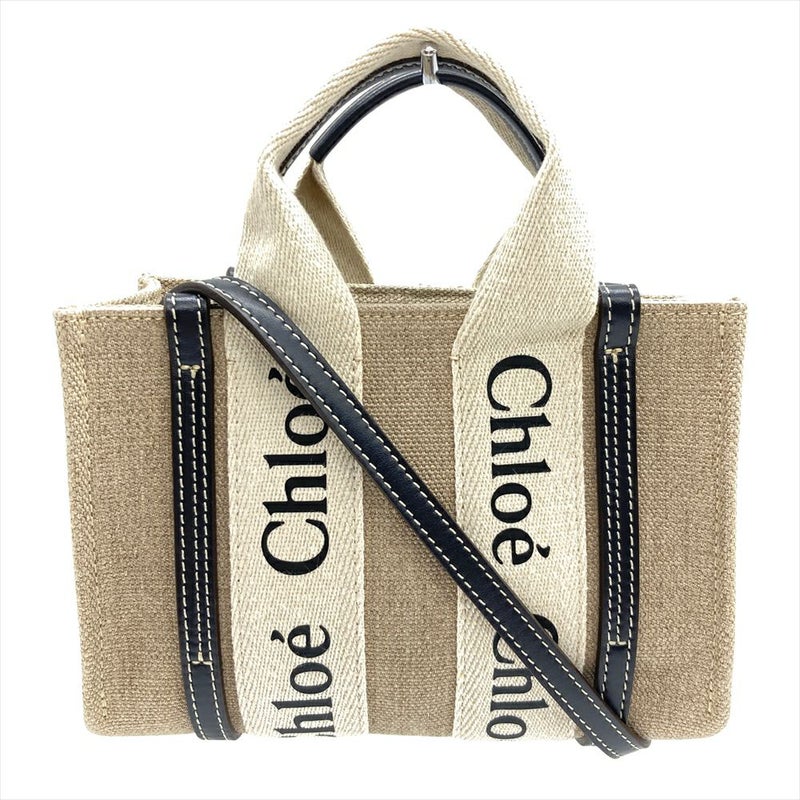 クロエ Chloe WOODY MINI ウッディミニ ショルダーバッグ 2WAY リネン ベージュ×ブラック CHC22AP237I2691J レディース【中古】
