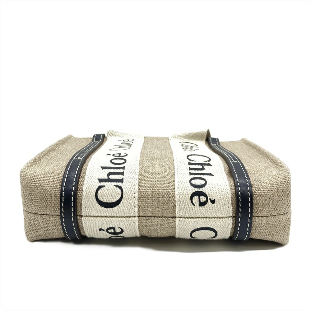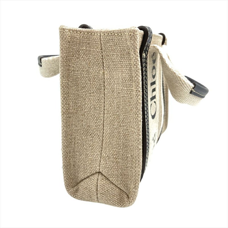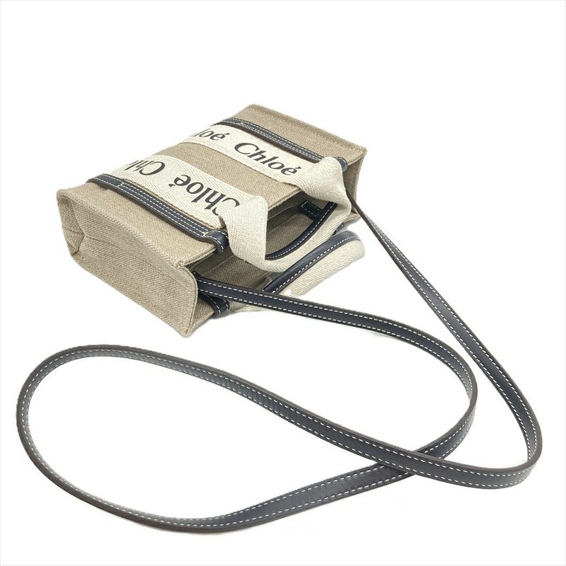 4. クロエ Chloe WOODY MINI ウッディミニ ショルダーバッグ 2WAY リネン ベージュ×ブラック CHC22AP237I2691J レディース【中古】