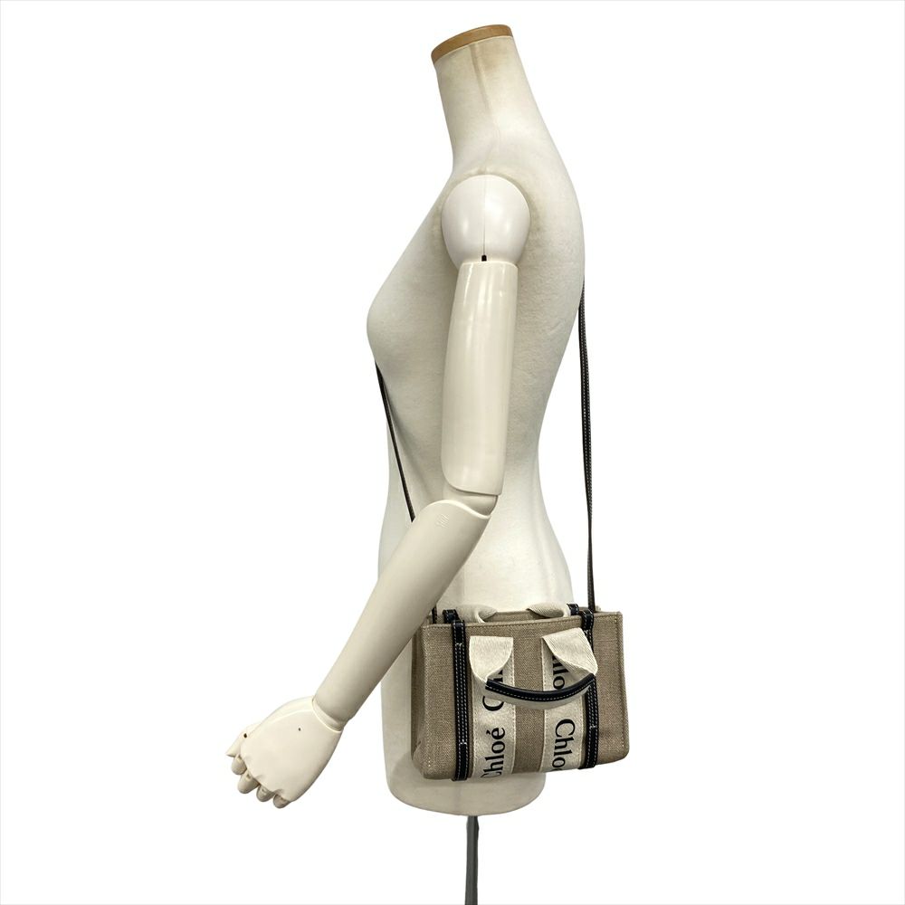 3. クロエ Chloe WOODY MINI ウッディミニ ショルダーバッグ 2WAY リネン ベージュ×ブラック CHC22AP237I2691J レディース【中古】