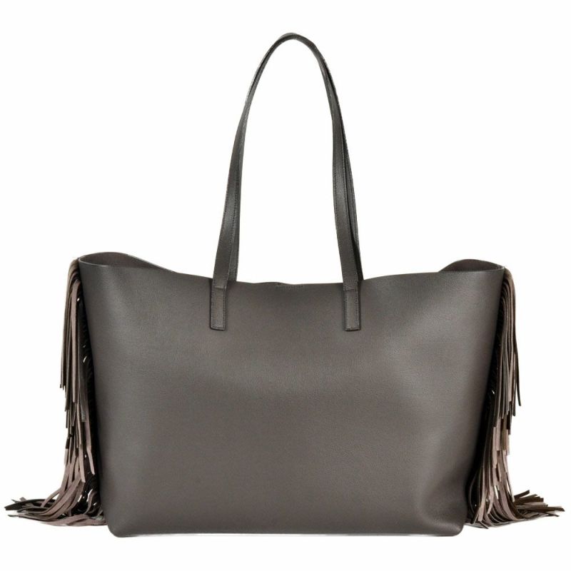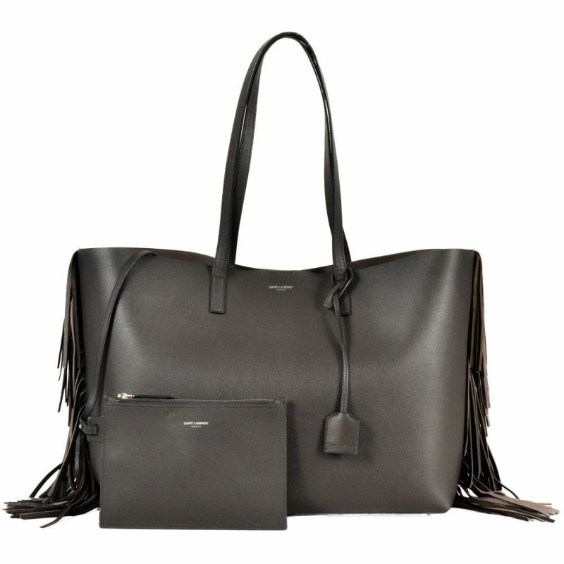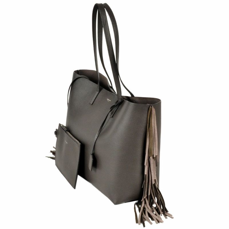 3. サンローラン SAINT LAURENT サックショッピング トートバッグ レザー 410666 グレー フリンジ レディース【中古】